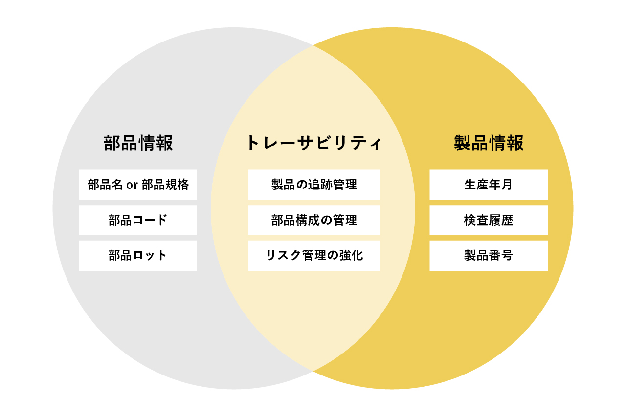 - 製品の追跡はもとより生産日に紐付けされた部材のロットや投入履歴、または検査履歴まで視覚化が可能。